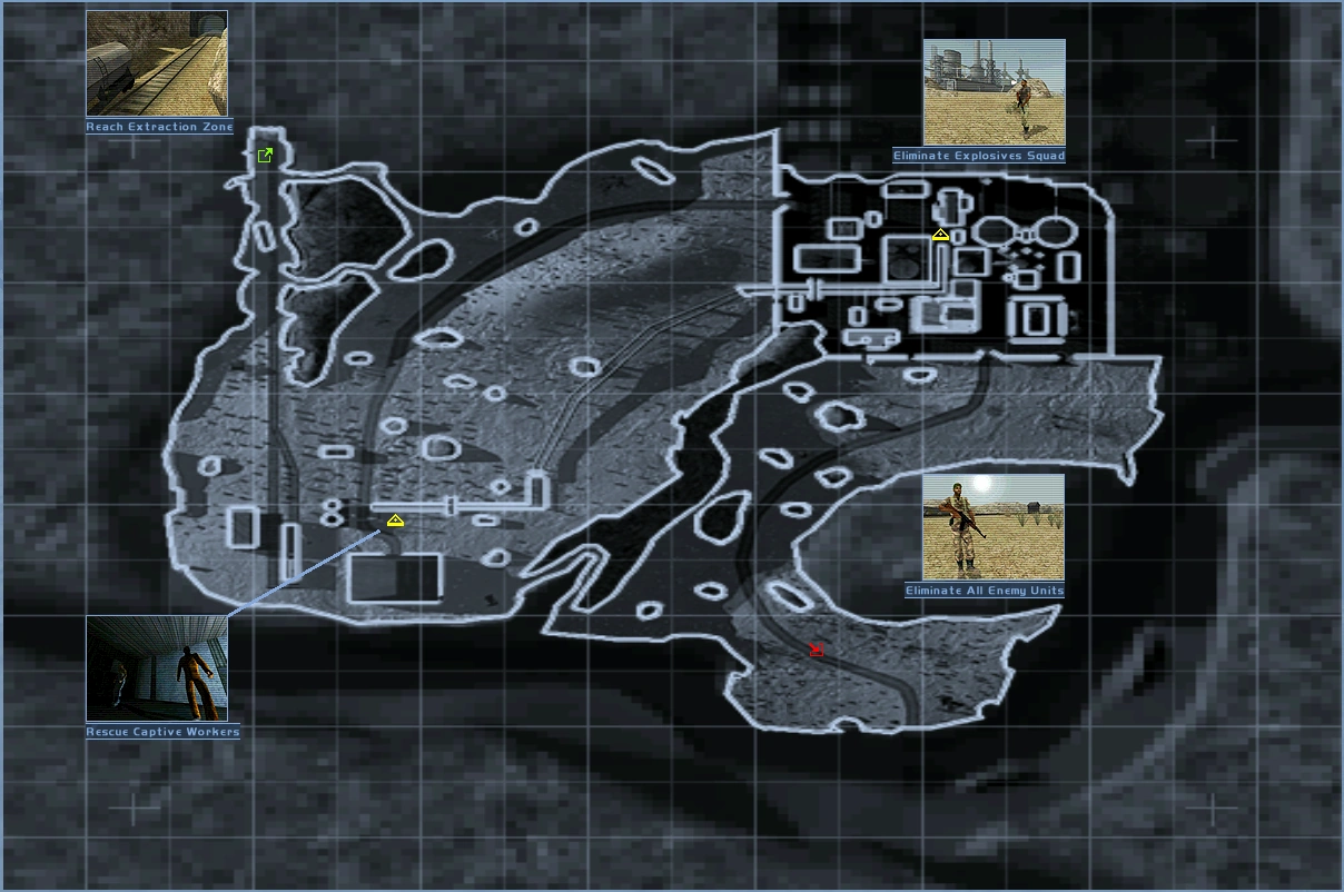 You'll be approaching the refinery from the south. Move in, secure it, and deal with the squad planting the demo charges. We've also heard that some members of the refinery staff were taken hostage, back when the invaders thought they were going to be operating the refinery themselves and needed expertise on hand. Find the survivors still being held hostage and extract them along the rail line that links the complex to the main track grid. Again, if you can, eliminate all of the enemy forces on site. However, rescuing the hostages and the refinery is more important.