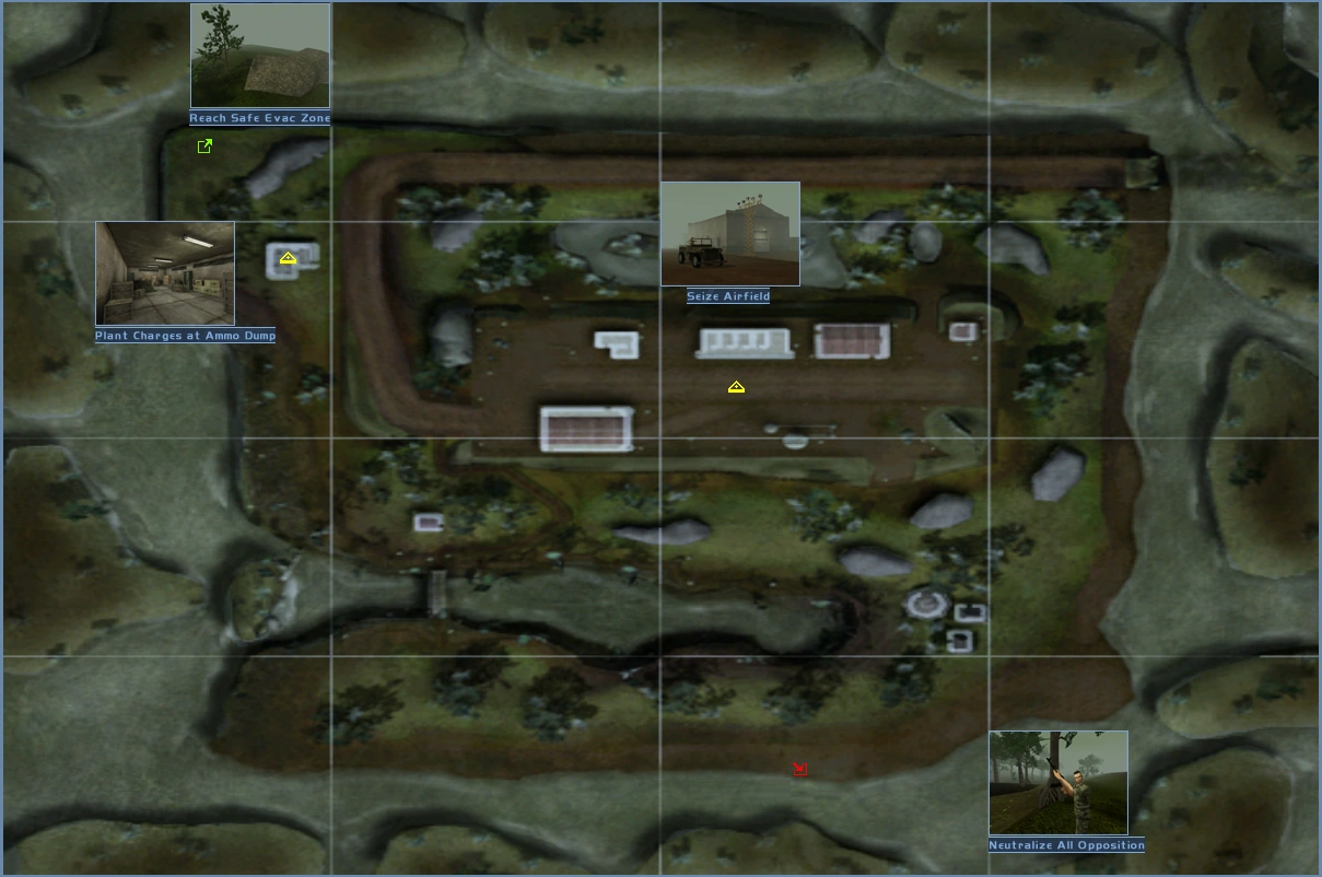 You'll be inserting by boat on this one, so be prepared. Your two main objectives are the airfield itself and the ammunition storage dump nearby. Seize one and then plant demolition charges to destroy the other. After that, get out as quickly as you can. With the way things are going on the main island, we don't expect that the airfield is heavily defended, but that's no guarantee.