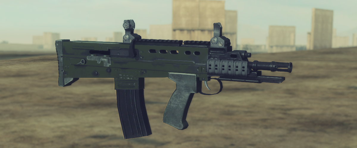 The modified version of the Enfield L22A2 featuring a MIL-STD-1913 sight rail and a slightly lengthened barrel and handguard appears. It is classified as a PDR, used by The Ghosts in MP. Being a bullpup weapon, the buttstock of the rifle cannot be altered.