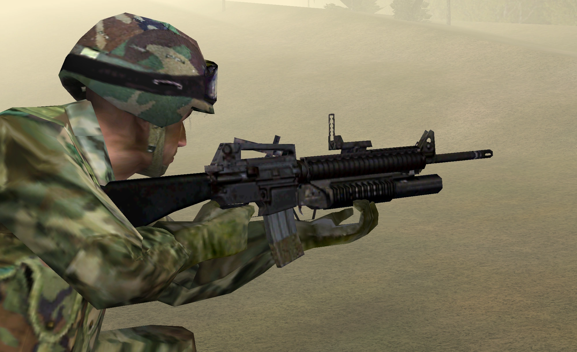 This variant of the M16A2 rifle comes with the M203 underbarrel 40mm grenade launcher attached. The addition of the M203 raises the weight of the weapon from 2.52 kg unloaded to approximately 5.48 kg. The M203 is a single shot, breech loading weapon. The M203 has a maximum range of approximately 400 meters. During combat, the recommended minimum safe range for firing the grenades is 31 meters.