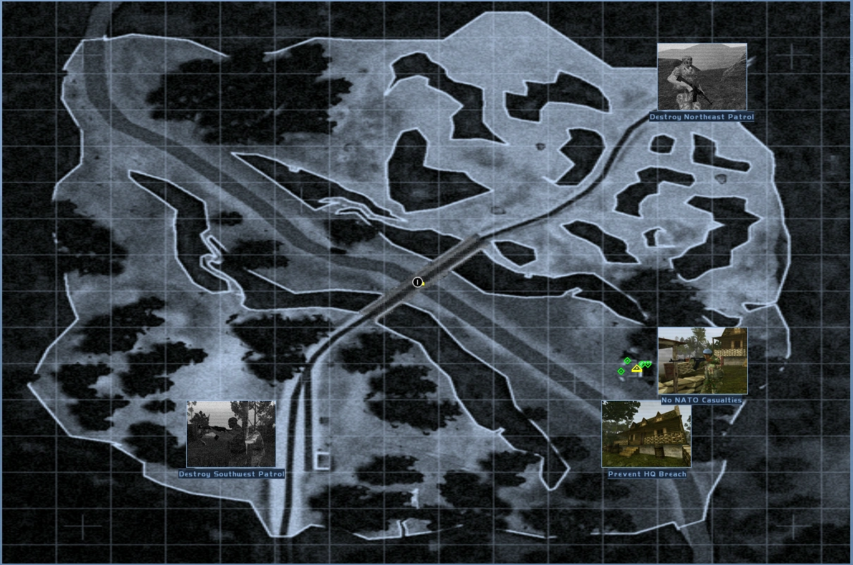 First priority is to slow down the main armored column headed for T'bilisi. We've identified an ambush point about 60 klicks west of here where the highway crosses under a rail line. A Georgian command post is nearby. If it's overrun, their entire western flank will collapse. Take out the Russian advance patrols first, then the tanks. And keep your demolitions expert under cover until you need him. Those tanks aren't going to be stopped by anything less than a rocket up the tailpipe.